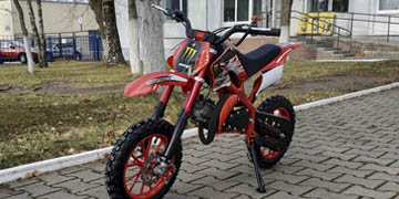 Независимо от того, собирается ли ваш ребёнок становиться профессиональным мотогонщиком, или просто будет гонять любительское эндуро, первые шаги в получении мотоциклетного опыта он с радостью может делать уже сейчас. Этот мотоцикл, рассчитан на пилотов возрастом от 5 до 9 лет. Этот маленький кроссовый мотоцикл оборудован 2-х тактным двигателем объёмом 49cc и мощностью 3.5 л.с. Мопеды с подобной мощностью уверенно перевозят взрослых мужчин, для юного гонщика с небольшим весом её хватает с избытком.
